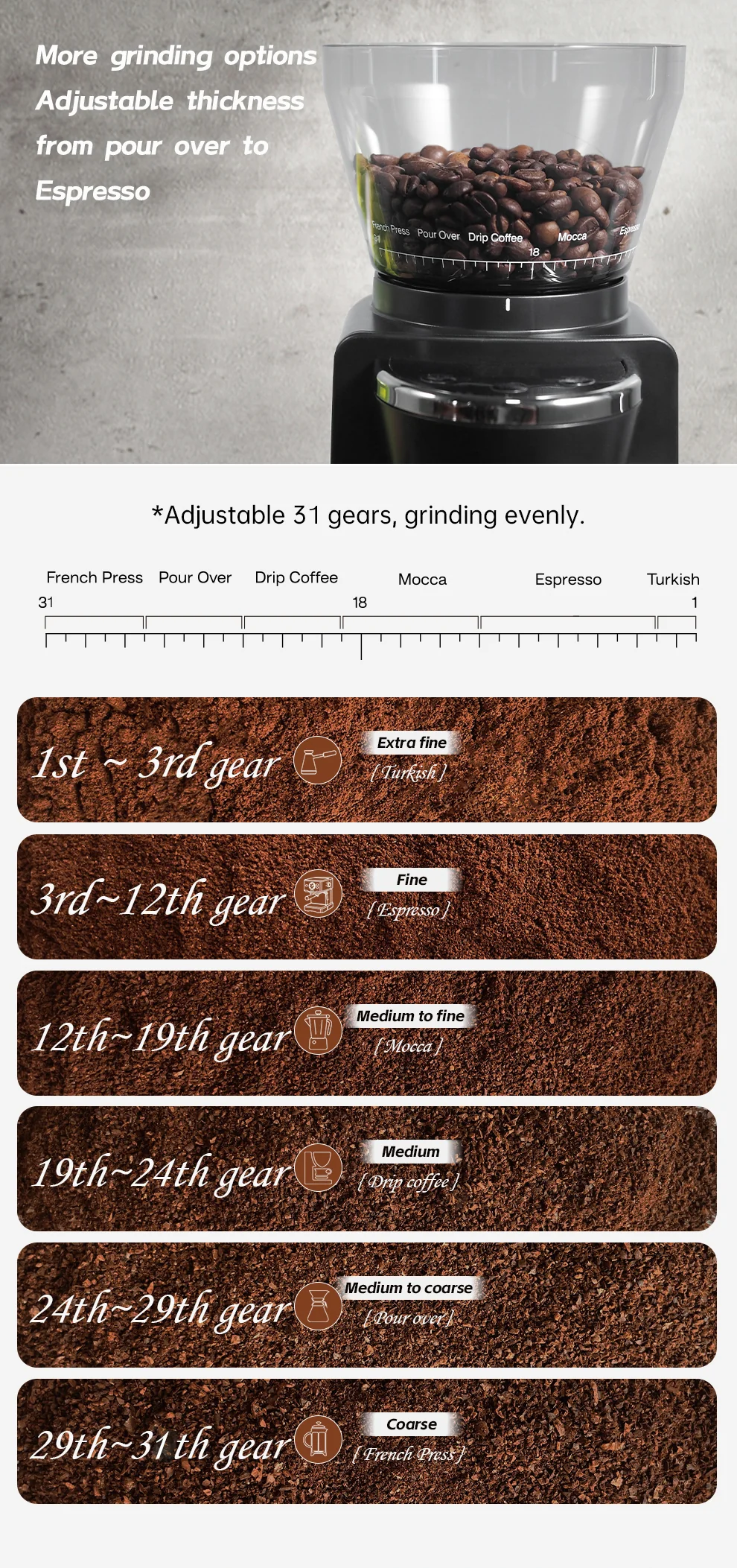 burr, and digital quantification and intelligent quantitative button ensure precise and consistent results with every cup of coffee you brew. Enjoy effortless accuracy and perfect coffee every time.